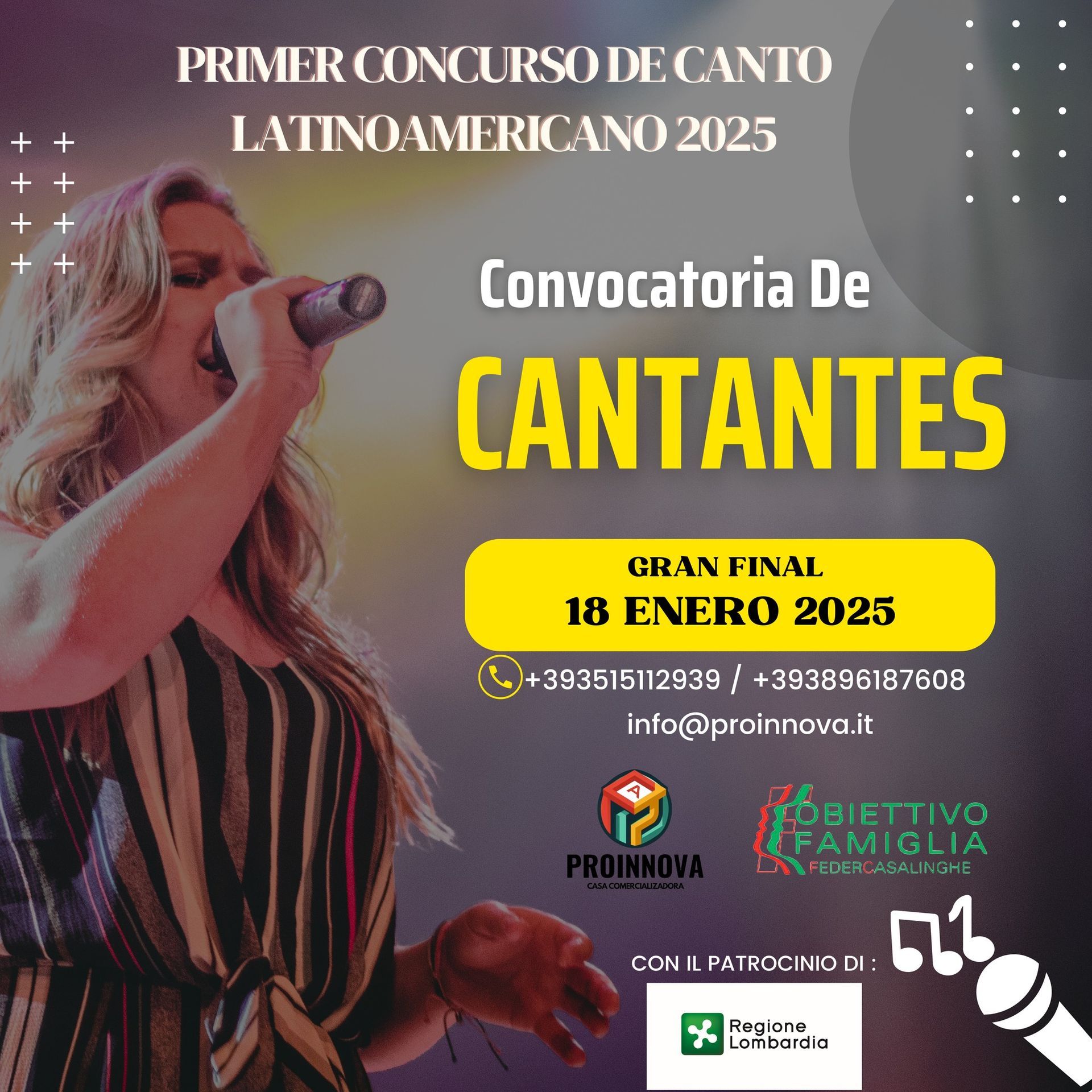 Organización del Concurso de Canto, realizado con el patrocinio de la Región de Lombardía, evento que permitió visibilizar el talento artístico y cultural de nuestra comunidad y estrechar vínculos con instituciones culturales locales.