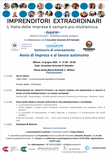 Seminario di orientamento Avvio di impresa e al lavoro autonomo